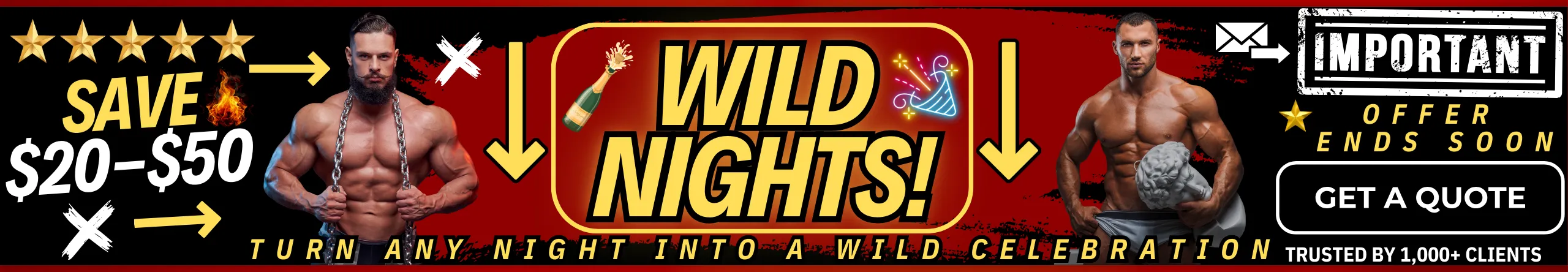 Looking to hire professional male strippers for your next celebration? Our elite male entertainers are available for bachelorette parties, despedidas de soltera, ladies’ nights, girls’ night out, birthday parties, divorce parties, LGBTQ+ events, and private parties nationwide. We also offer upscale party services including male butlers, cabana boys, shirtless bartenders, and sip & paint male models, all carefully selected for their looks, personality, and professionalism. Whether you’re booking one entertainer or a full male revue experience, we make it easy to find the best male entertainers near you for a fun, stylish, and unforgettable event.